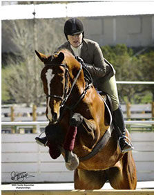 In her 16 plus years of riding she placed competitively in children's and junior hunters. She received numerous equitation and medal championships under the training of Carol Fulton. In 1999 winning the Greater Oklahoma Equitation Medal. Best Child Rider both at the AHSA Zone 7 Finals, and Estes Park Hunter Jumper Festival. In 2000 she was named as the Oklahoma Hunter Jumper Association Equitation Champion.